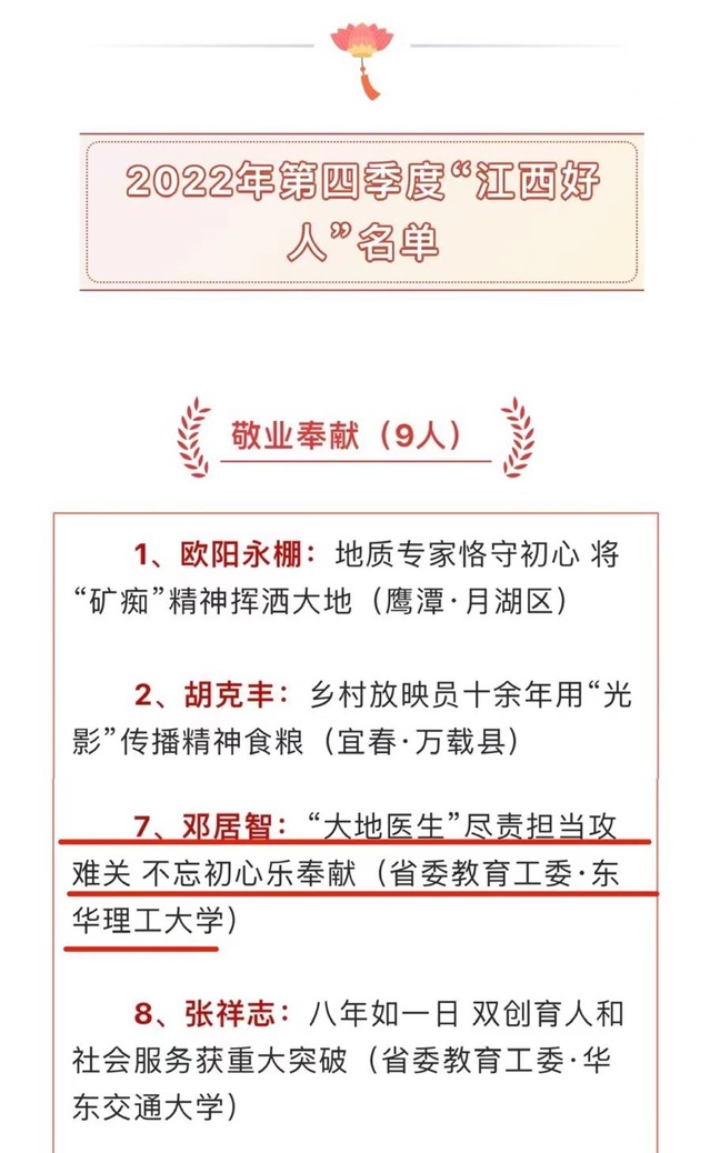 【江西好人】喜报!我校邓居智教授荣获2022年第四季度“江西好人”称号