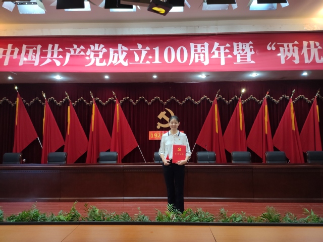她充分利用学校及其周边地区丰富的红色资源开展支部活动,让红色基因深深烙印在学生的血脉之中。她组织支部成员参观方志敏烈士陵园、小平小道陈列馆等红色场馆,赴八一起义纪念馆、南昌舰重温入党誓词等活动;组织开展“庆祝建党100周年”党建微视频作品拍摄活动,支部拍摄的《我心向党 青春无悔》视频,在江西教育电视台展播,做到让支部党员在体验中成长,在成长中感悟;组织支部开展“以青春的名义,将党史‘绘’进心间——巧手献礼建党100周年”主题教育活动,不断从党的历史中汲取智慧和力量,以青春之名,抒发对祖国的热爱,不断坚定共产主义的理想信念。在她的带领下,支部先后荣获校级“先进基层党组织”“最佳党日活动”等荣誉。