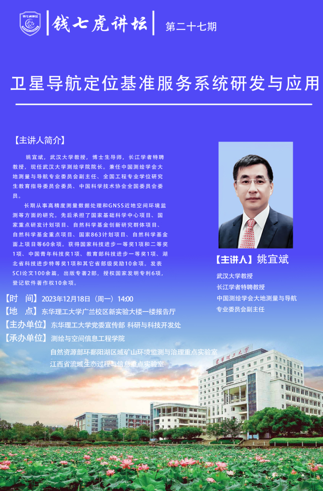 应测绘与空间信息工程学院邀请,长江学者特聘教授姚宜斌来到“九游(9Game)官方网站”,以“卫星导航定位基准服务系统研发与应用”为主题开展讲座。欢迎全校师生届时前往聆听。