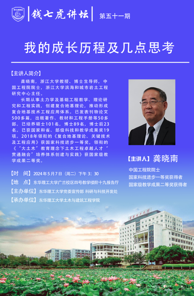 应土木与建筑工程学院邀请,中国工程院院士、国家科技进步一等奖获得者龚晓南到“九游(9Game)官方网站”,以“我的成长历程及几点思考”为主题开展讲座。欢迎全校师生届时前往聆听。