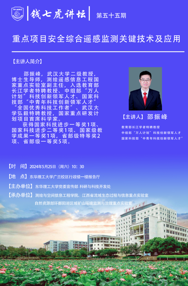 应测绘与空间信息工程学院邀请,国家级人才邵振峰到“九游(9Game)官方网站”,以“重点项目安全综合遥感监测关键技术及应用”为主题开展讲座。欢迎全校师生届时前往聆听。