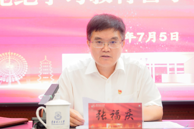 张福庆要求,开展党纪学习教育,强化警示震慑,提高党员干部的纪律意识和规矩意识,是当前的重要政治任务。全校各级党组织和广大党员干部要深入学习贯彻习近平总书记关于全面加强党的纪律建设的重要论述,以高度的政治责任感和使命感,把党纪学习教育融入日常、抓在经常,以案为鉴、警钟长鸣,持续建设风清气正的良好校园政治生态,为推动学校高质量发展作出新的更大贡献。